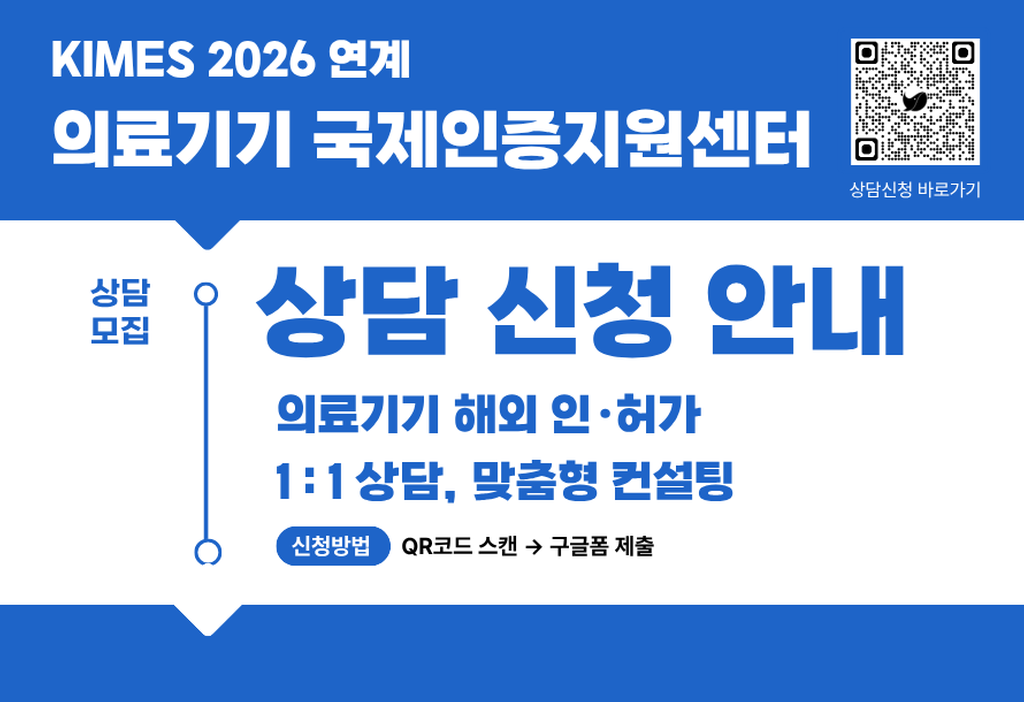 국제의료기기병원설비전시회(KIMES 2026) 연계 의료기기 1:1 인허가 상담을 아래와 같이 운영하오니 많은 관심과 참여 바랍니다.